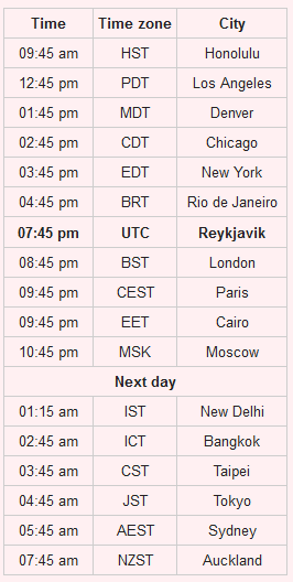 Questa tabella mostra l'ora della meditazione per i fusi orari selezionati: